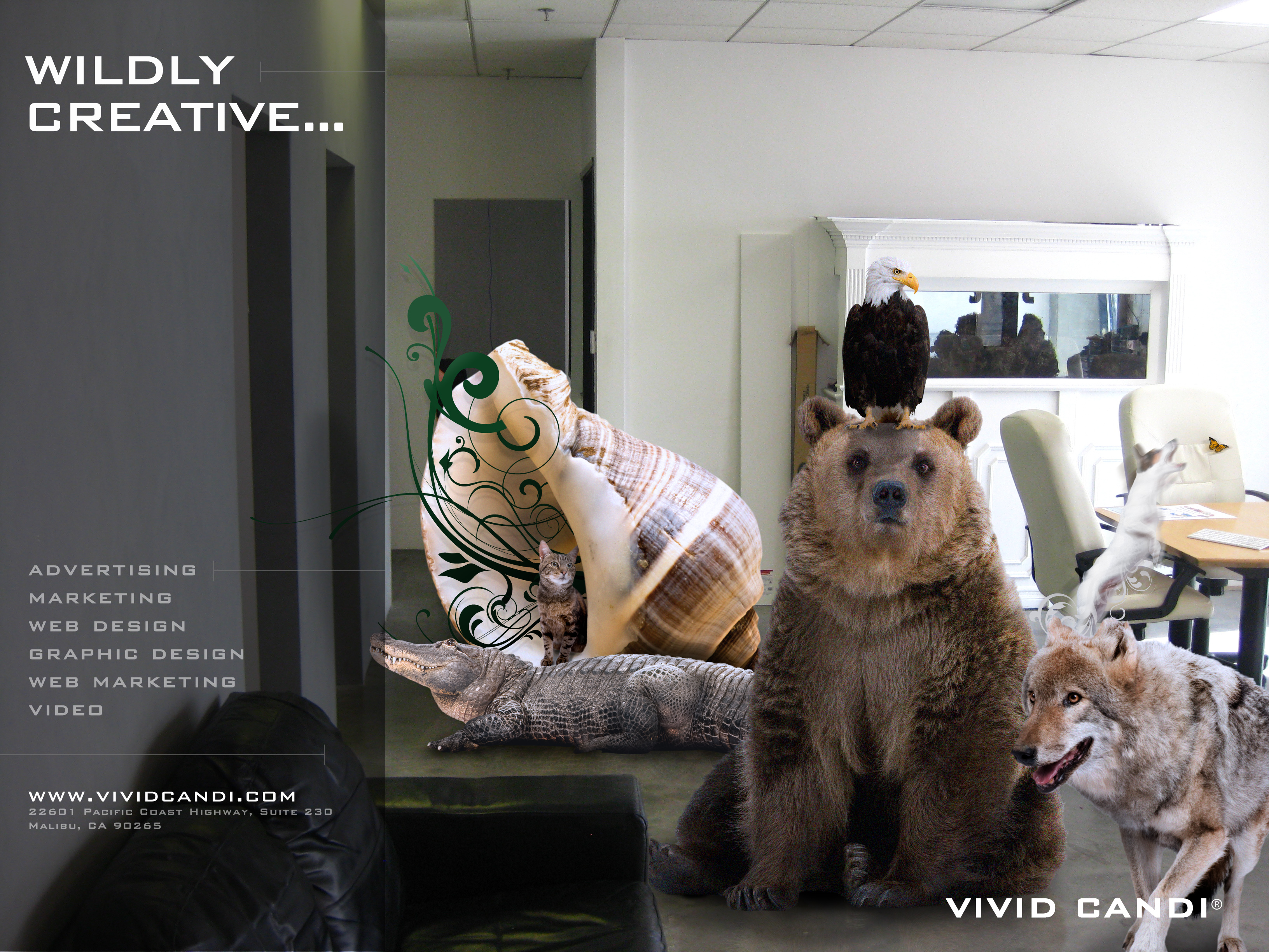 Here are two print/web ads that I created for our company, Vivid Candi! It was a fun departure from some of the normal projects that I usually work on. I enjoyed working with photoshop in the old ways that I used to (just making unrealistic situations that look kinda real). Both of the images feature our office here in Malibu.