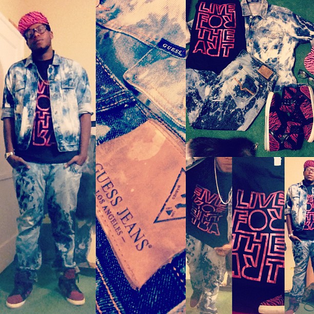 in 09. So I experimented with the skytops. Then I bleached an old Guess jacket, & then I did it to a new pair of jeans later on. Also #shoutout Sean @livefortheart (Facebook.com/livefortheart) #fashion#80s#Dope#Design#Supra#Art