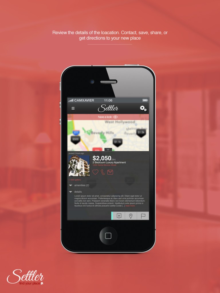 Settler ios home finder app that I created. I designed the interface completely (typography, graphics, and layout).