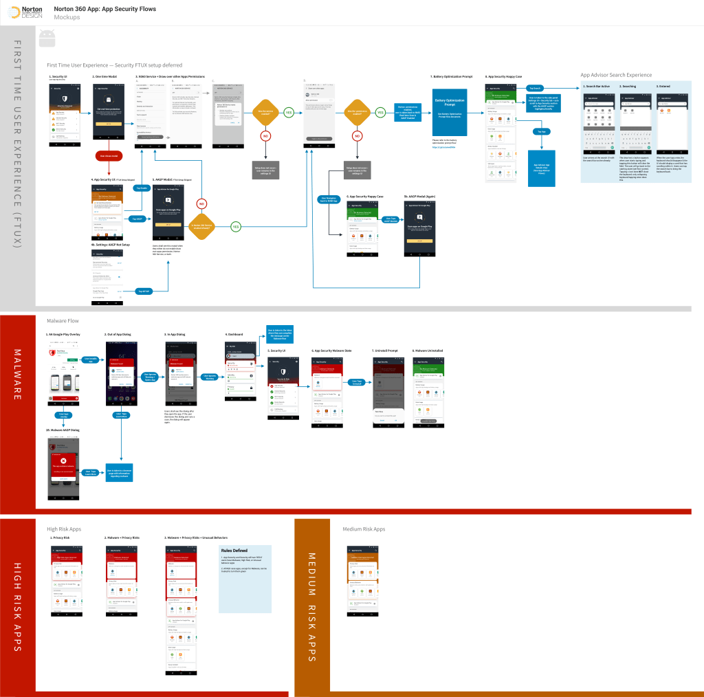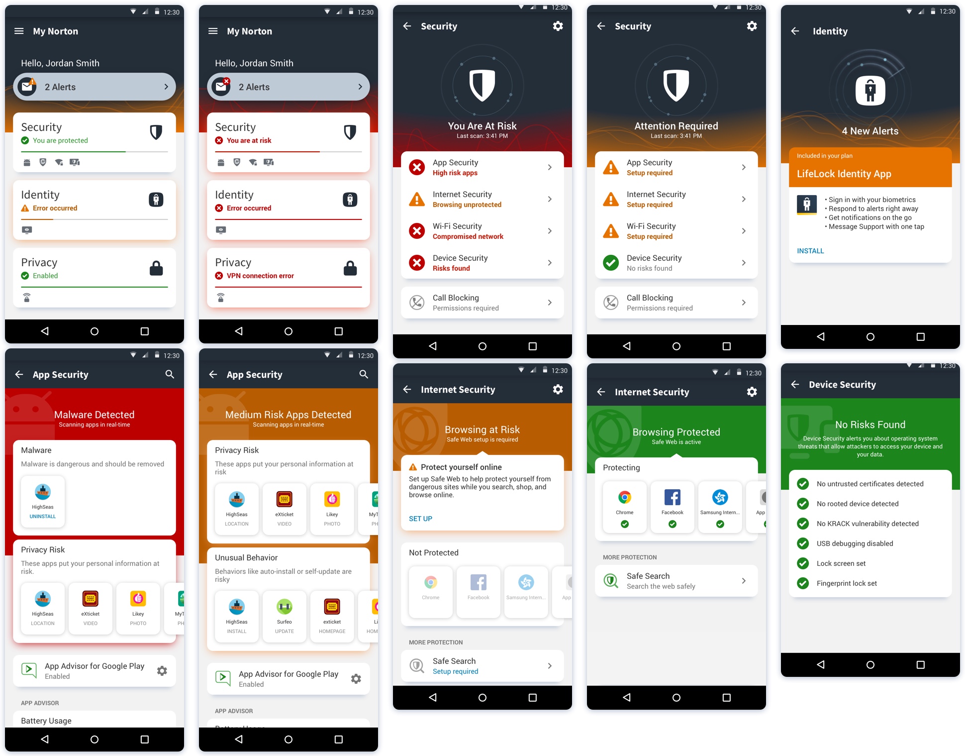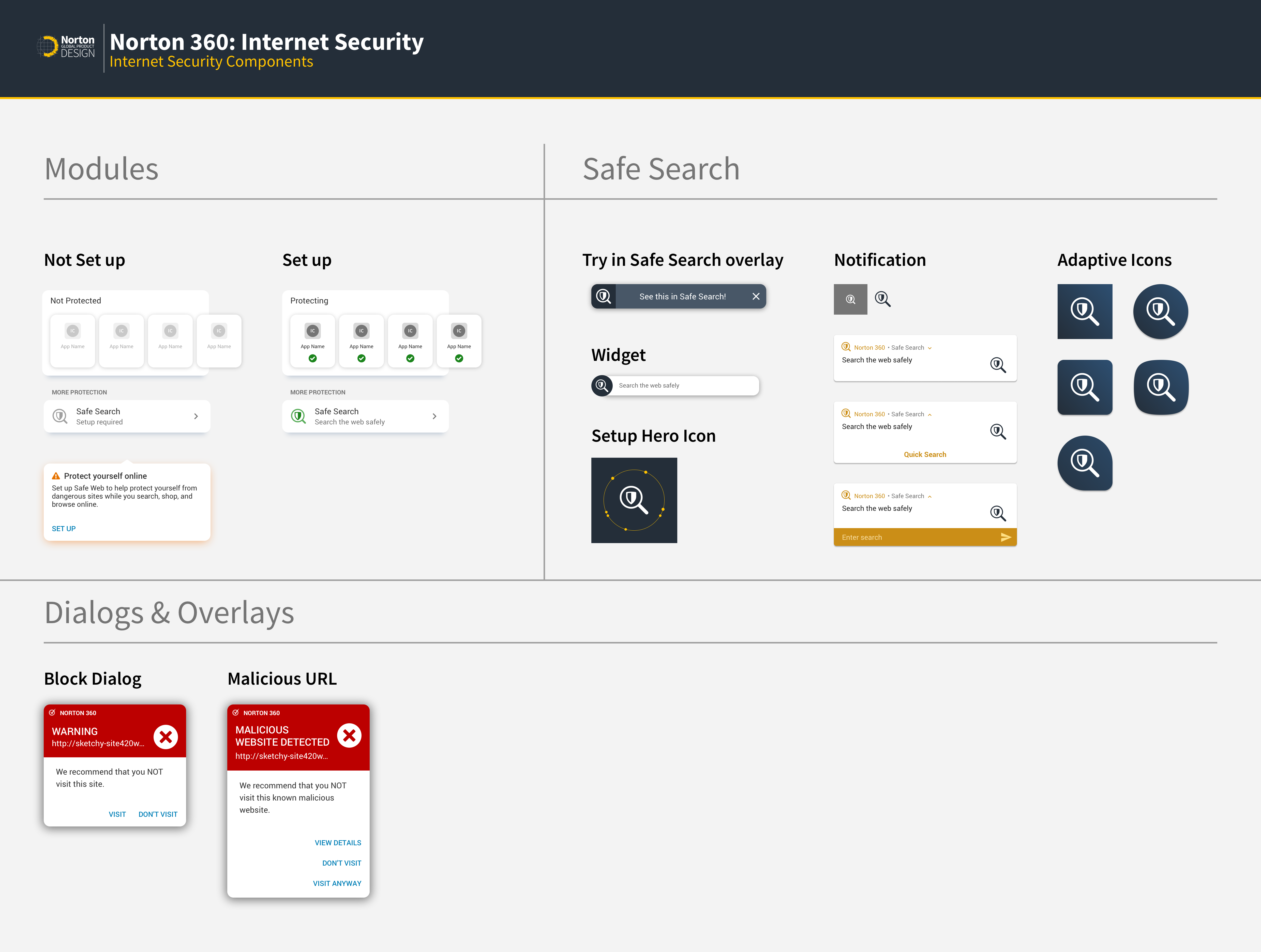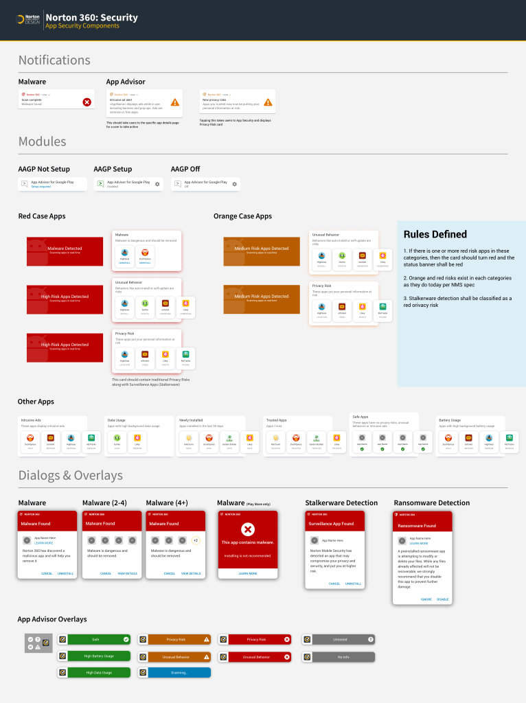 Norton users became acquainted with the aforementioned cyber safety offering UIs where all of their subscription features could be launched to their respective apps and browser experiences. However, users had confusion regarding which Norton app to download initially in order to utilize the primary features of the subscription. The Norton customer base provided feedback about not wanting to download multiple apps to get the full value of their subscription. It became clear that I had to address the issue of multiple apps having competing alerts with very differently styled experiences.