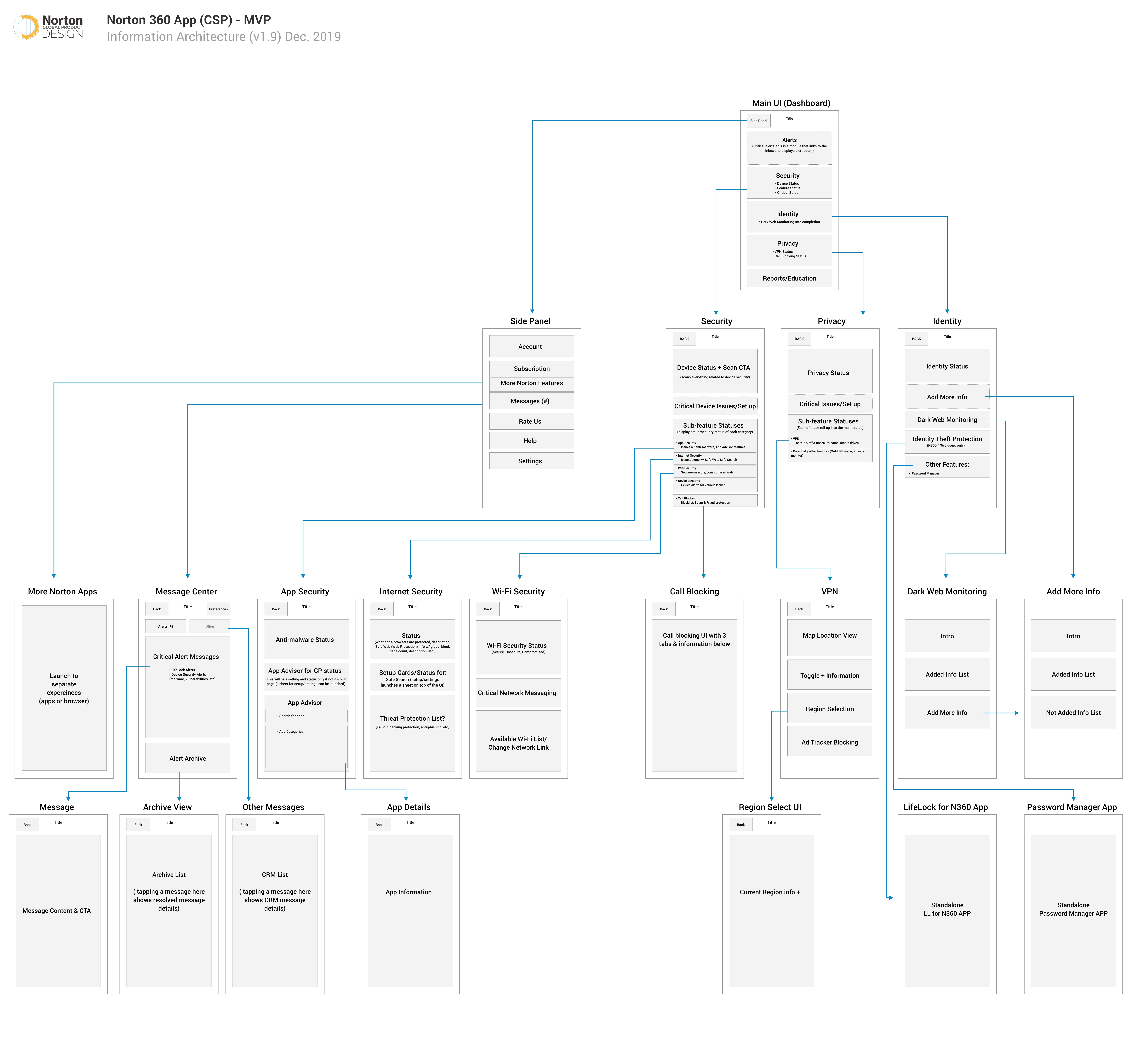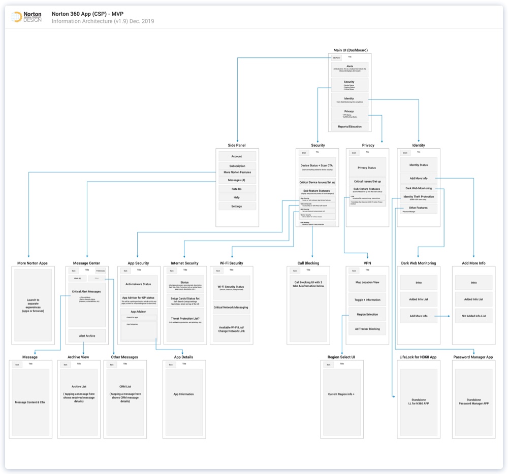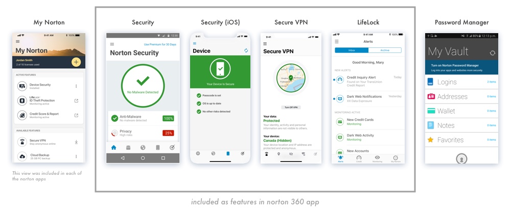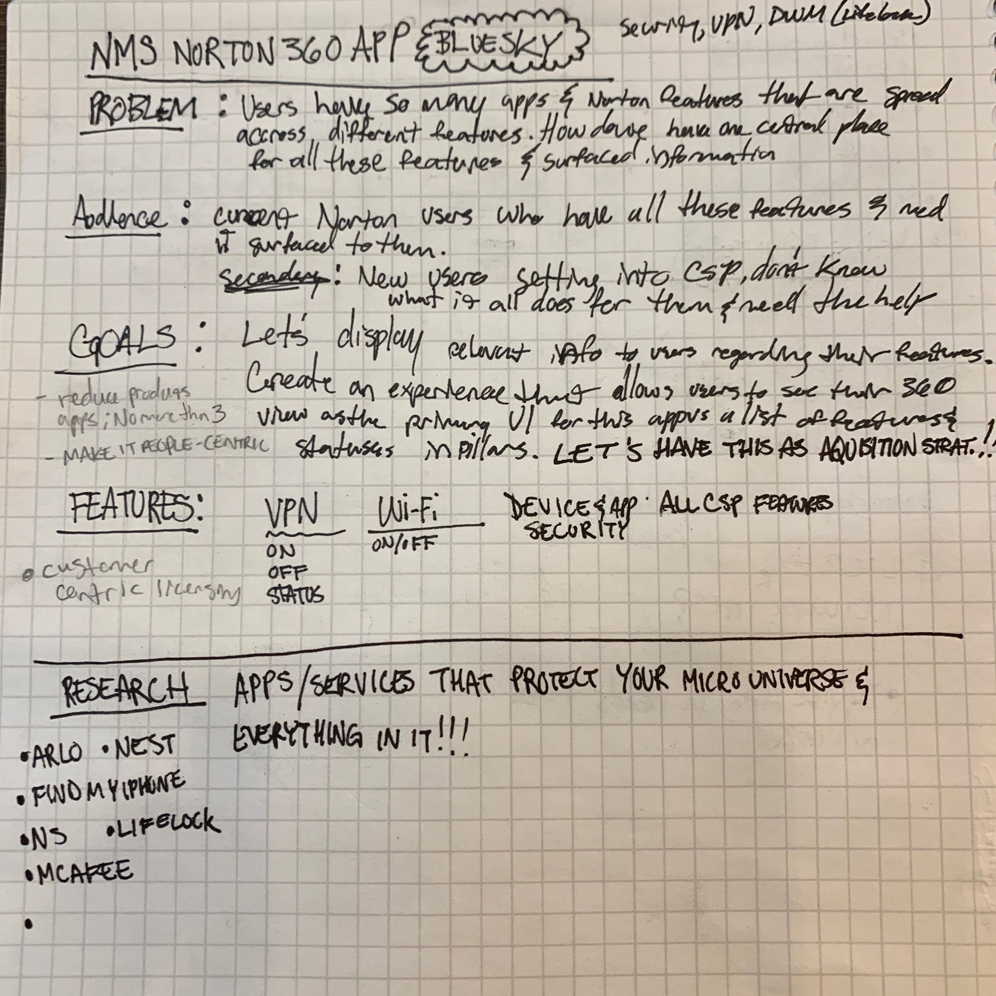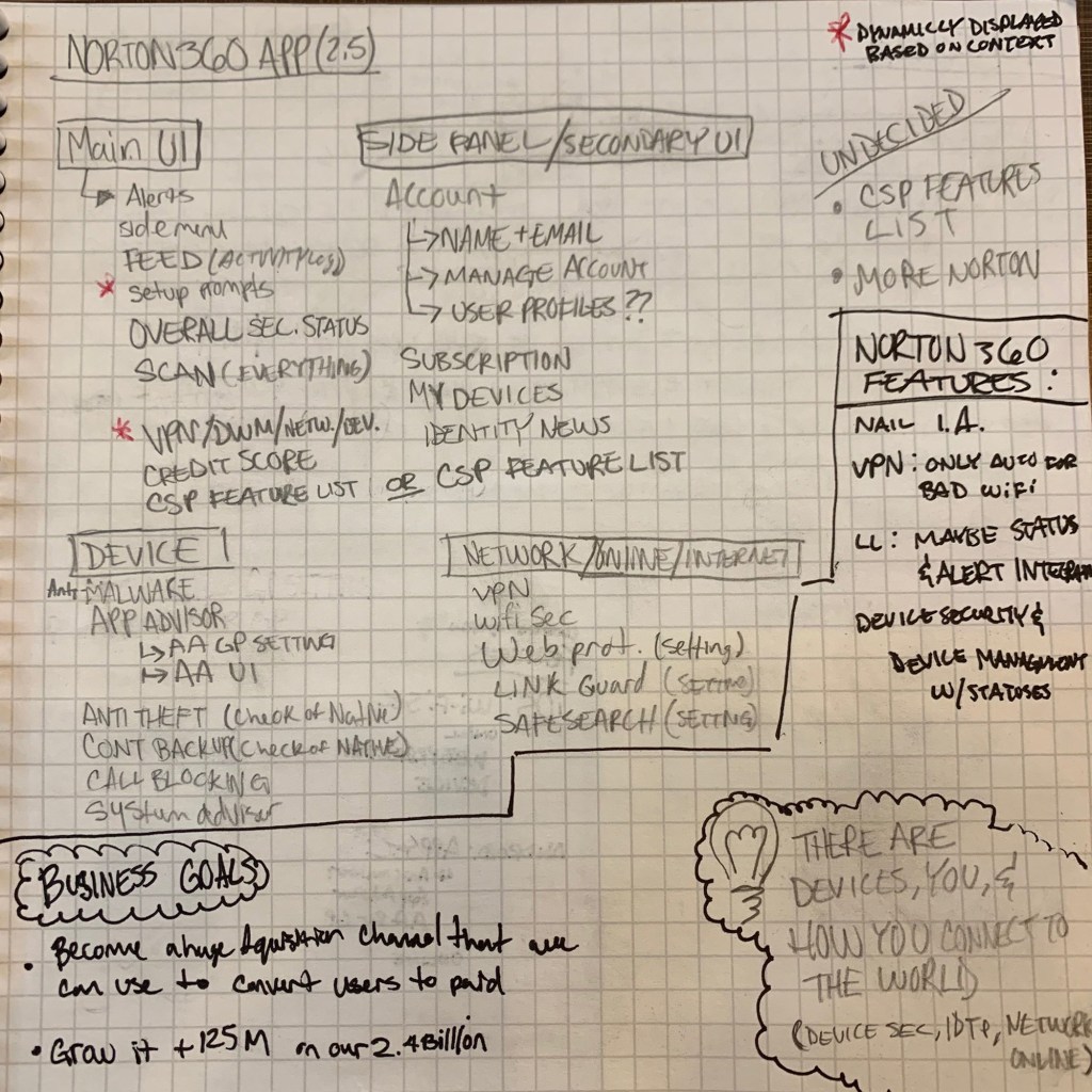In late 2018, Norton began shipping a cyber safety experience in its products that had a consolidated view of all available features that a user had in their subscription. This experience surfaced everything in a way so that users could see exactly what they had and its status, but it did not have integration of these core features in one app. In 2019-2020, I and other stakeholders set out to create an app that delivers our core features of device security, identity theft protection, and VPN privacy in one place. This is Norton 360…