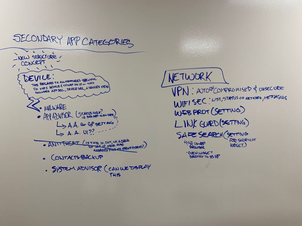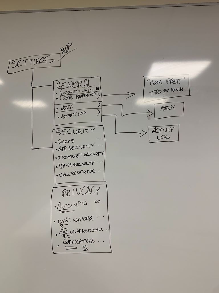 Creating white board drawings to organize the features and structure the information is key. Figuring out how to present the information in appropriate areas while ensuring users find clarity in the massive ocean of information is always a challenge and it can be made easier by blocking out the architecture with the raw details. I presented the information architecture to stakeholders throughout the company—from senior VP engineering leaders to fellow designers and product managers, I had to ensure that the integrity of the app was solid for this undertaking.