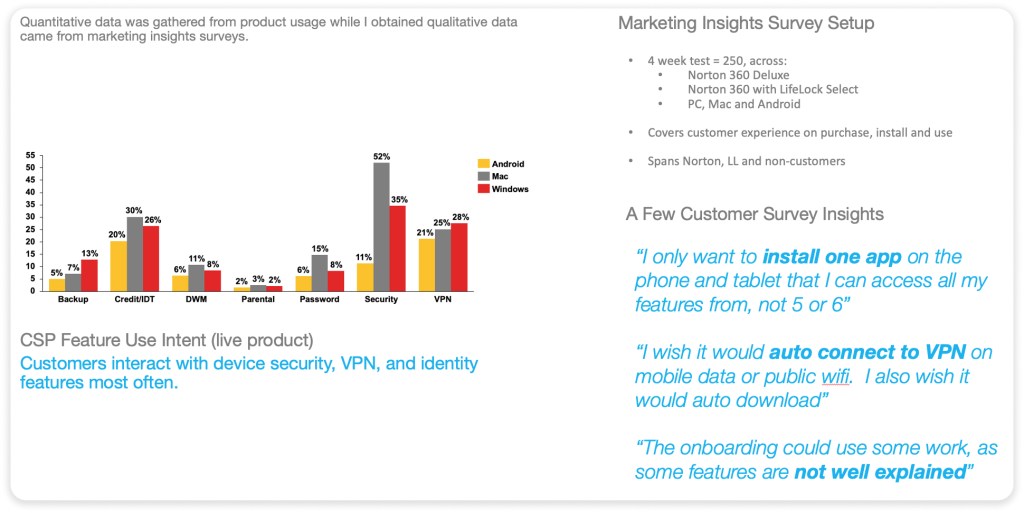 I worked with product managers and marketing insights teams to gather data on how customers used CSP, what they thought about the experience, and our general types of customers.